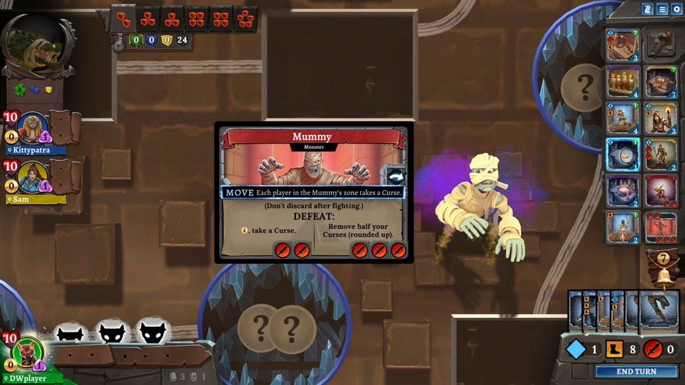 With new maps, forty new dungeon cards, a new dragon and other monsters protecting the treasure and a new curse token gameplay element and new digital-exclusive content including: “nine new Challenges await, each with their own unique rules and win conditions — as well as ‘heroic’ variants for players who really want to put their tomb raiding to the test!”