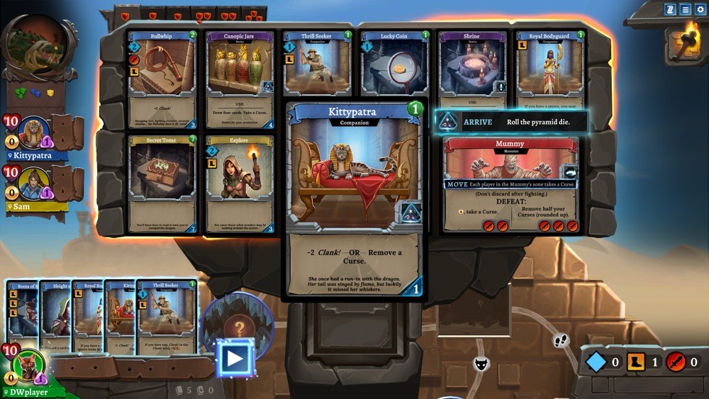 Dire Wolf Digital has just announced that The Mummy’s Curse, their 2018 expansion to Clank! will soon be getting the digital treatment.